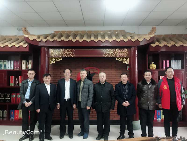 勁牌酒業(yè)股份有限公司董事長吳少勛(左三)等與公司董事長魏云飛(右三)在瀘州鑫霸實業(yè)公司合影