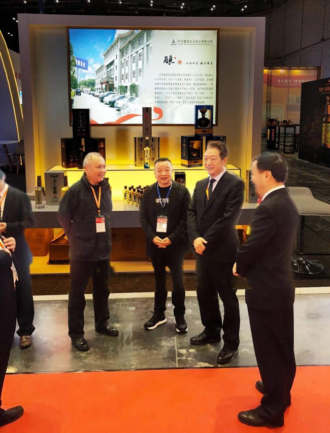 白酒專家胡永松教授(右二),瀘州市酒業(yè)促進(jìn)局局長任小波(左二)在公司董事長魏云飛(右一)陪同下指導(dǎo)公司工作。